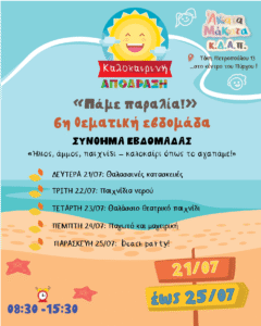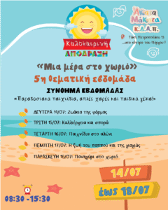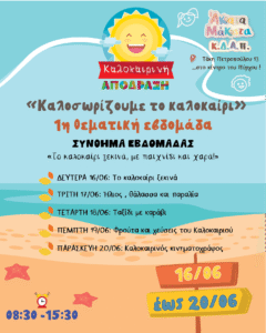 Το φετινό καλοκαίρι, το ΚΔΑΠ Άκατα Μάκατα σας προσκαλεί σε μια ξεχωριστή Καλοκαιρινή Απόδραση, γεμάτη παιχνίδι, δημιουργία και χαρούμενες αναμνήσεις για τα παιδιά σας!